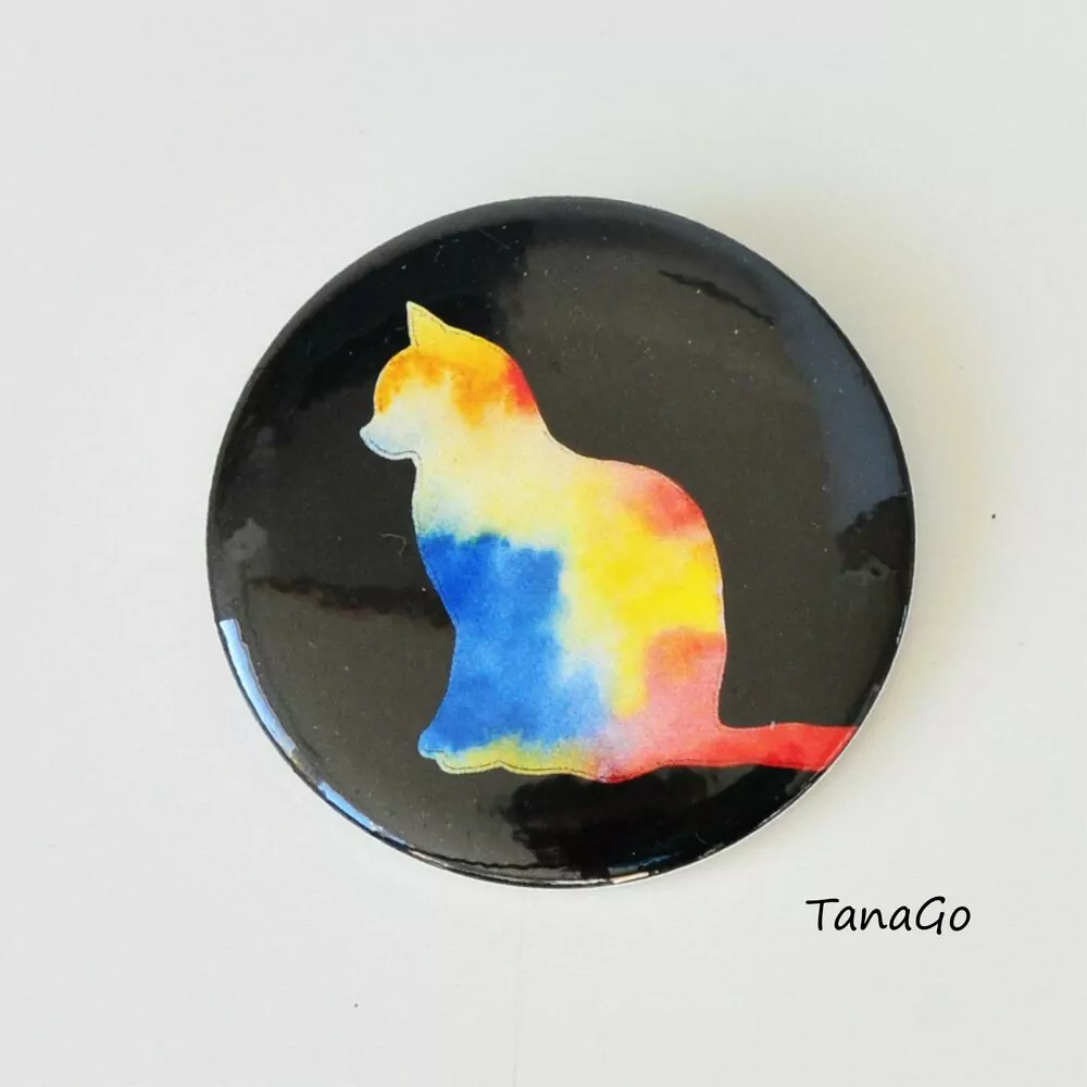 Zrcátko s akvarelovou malbou kočky na černém podkladě. Prostě - z jedné strany kočka, z druhé strany kočka :)