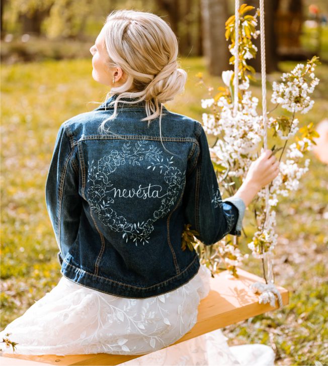Budeš nevěsta? Tak to ukaž! Připravila jsem pro vás exklusivní, štětcem vyšívanou bundu s jasným nápisem. Protože jo, ten svatební den je prostě celý o Tobě ♥ A využiješ ji už na rozlučce se svobodou...